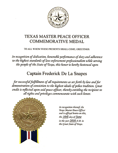 DISCLAIMER OF ENDORSEMENT: Any reference obtained via this server, including e-mail from this server, to a specific commercial or non-commercial product, process, or service does not constitute or imply an endorsement by the Texas Commission on Law Enforcement (T.C.O.L.E.) or the State of Texas of:
